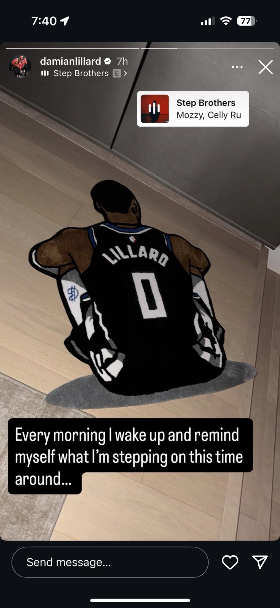 北京时间今日,新赛季重返开拓者的后卫利拉德更新个人社媒,晒出了自己家中铺设的特别的地毯以表达自己对于伤势恢复的决心。