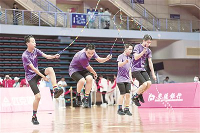 残特奥会上,我市运动员正在进行跳绳比赛。